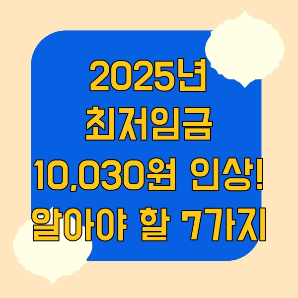 2025년 최저임금이 10,030원으로 인상되었습니다!🎉 시간당 170원, 월급으로는 약 2,096,270원(주 40시간 기준)의 변화인데, 작은 금액처럼 보여도 1년이면 꽤 큰 차이죠? 🤔 최저임금 인상과 더불어 꼭 알아둬야 할 7가지 핵심 정보, 지금 바로 확인해보세요! 😉 주휴수당, 수습 적용 여부, 워라밸까지! 💯 꼼꼼하게 챙겨서 알뜰살뜰하게 내 권리, 챙겨봅시다!