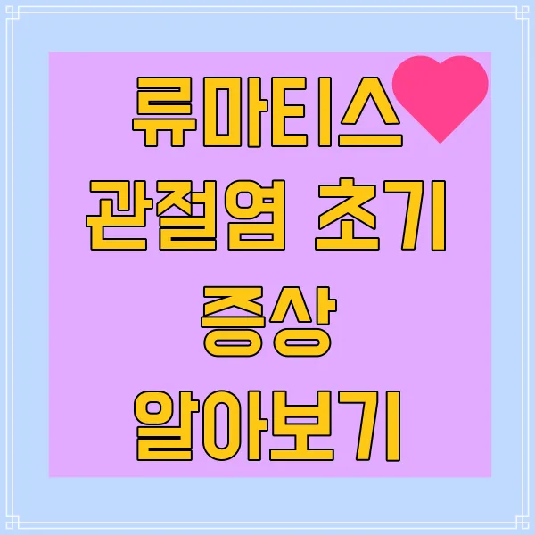 안녕하세요! 오늘은 류마티스 관절염 초기 증상에 대해 이야기해 보려고 해요. 처음에는 사소한 불편함처럼 느껴질 수 있지만, 이 증상들이 나중에 더 큰 문제로 이어질 수도 있답니다. 많은 분들이 통증이나 피로감을 쉽게 넘길 수 있지만, 저희가 알아야 할 중요한 체크포인트들이 있죠. 그러니 커피를 한 잔 하면서 함께 초기에 나타나는 주요 증상들을 살펴보도록 해요. 이를 통해 조기 진단의 중요성도 함께 기억해 봅시다!